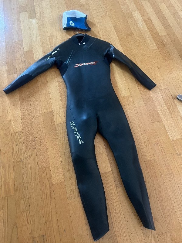 I sell wetsuit that I wore at triathlon. Possibly 8-10 times. Never in the sea.