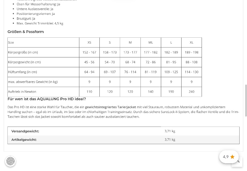 My partner has outgrown it! (Height 165cm and weight 69kg), we estimate that the lady who would dive in this great drysuit should be a little smaller (2-3cm).