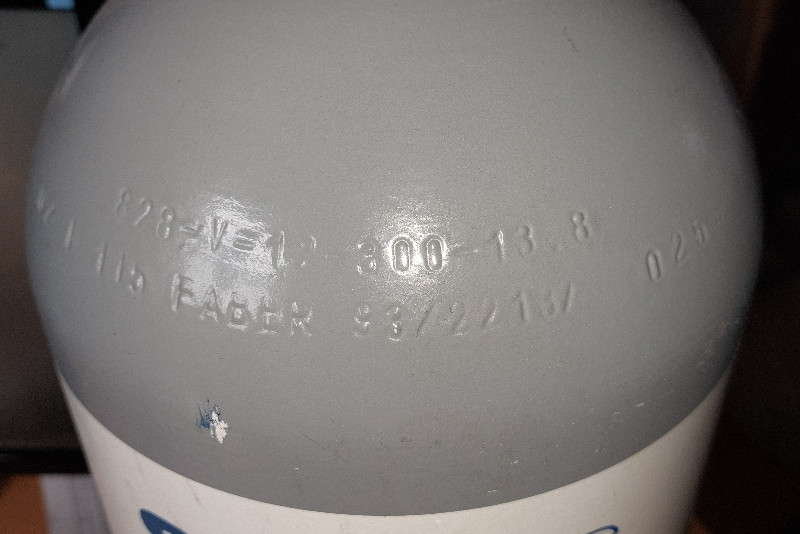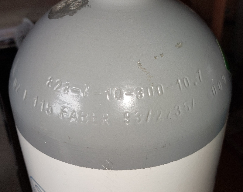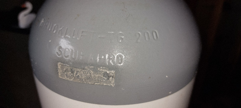 The bottle has been with me for a long time, so the TÜV has expired. This would have to be renewed. It is still filled with air from the 90s.