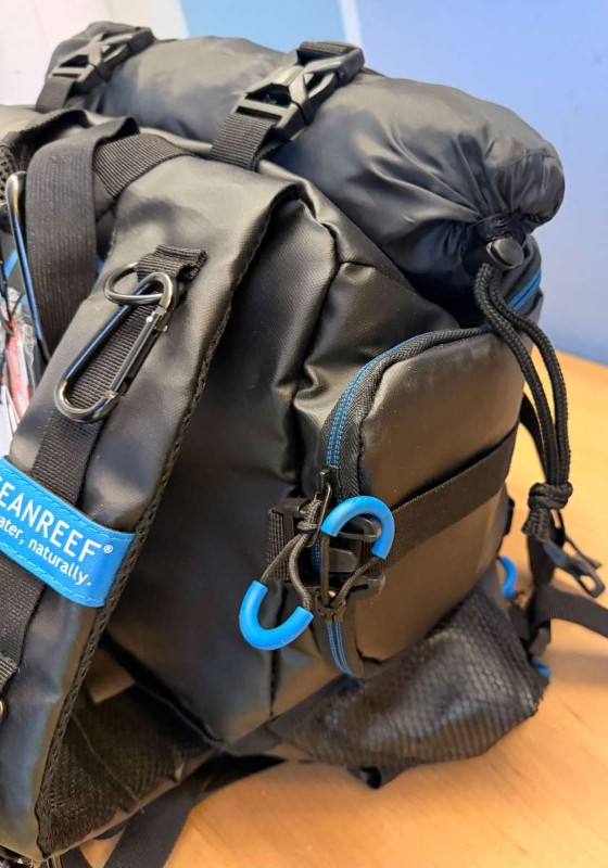 Abwerfbare Bleitasche, Metall D-Ringe und "Täschchen" für Trim Blei. Ein Inflatorschlauch packe ich auch gerne mit dazu.