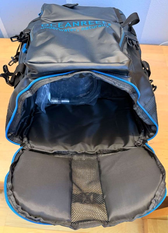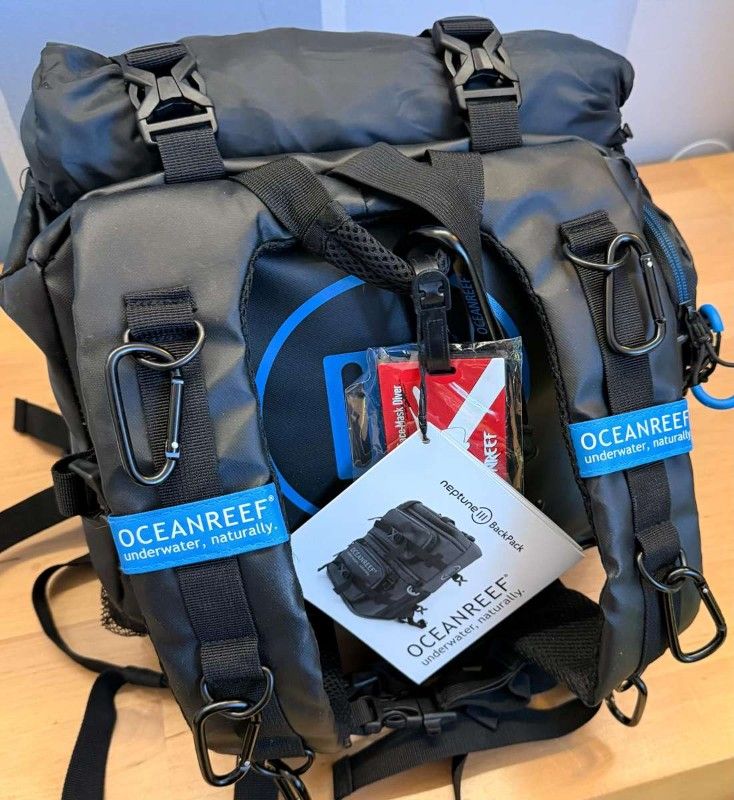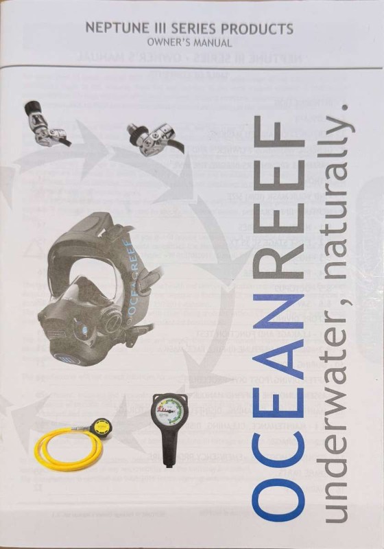 Selling a virtually unused, refurbished OceanReef Neptune III full-face diving mask, including the original OceanReef backpack and OceanReef low-pressure hose with quick connector for connection to the regulator.