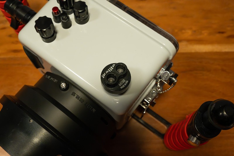 Es kann separat noch der Ikelite 5516.45 Mirrorless Macro Flat Port und die Ikelite 5516.65 Mirrorless 1.2 Zoll Objektiv Verlängerung erworben werden. Mit diesem Flat Port habe ich das 50er Sony Macro betreiben können.