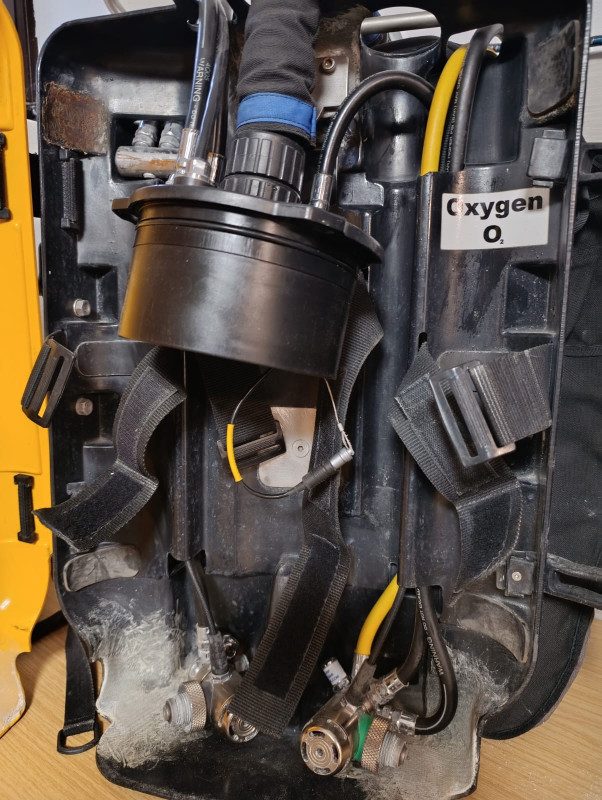 Ebenfalls ist ein Inflator- und Trockischlauch mit dabei. Die Schläuche sind in DIR/Hogarthian Konfiguration mit 2,1m Schlauch am Hauptatemregler.