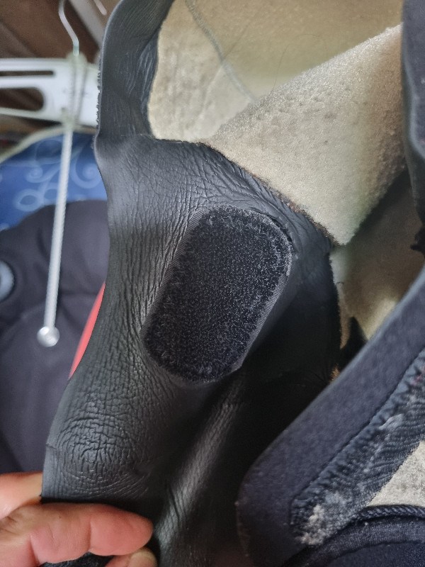 Komfort: Die Fußtasche wird als bequem beschrieben, und der Fersenriemen mit der großen Zuglasche erleichtert das An- und Ausziehen.