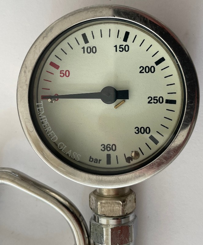 Gebrauchtes Finimeter 52mm, Anzeige bis 300 bar. War bis zuletzt im Einsatz.