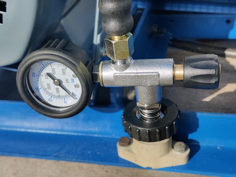 Der Kompressor wird mit 330 bar betrieben, das Sicherheitsventil ist auf 330bar eingestellt und hat ein neues Füllventil bekommen.